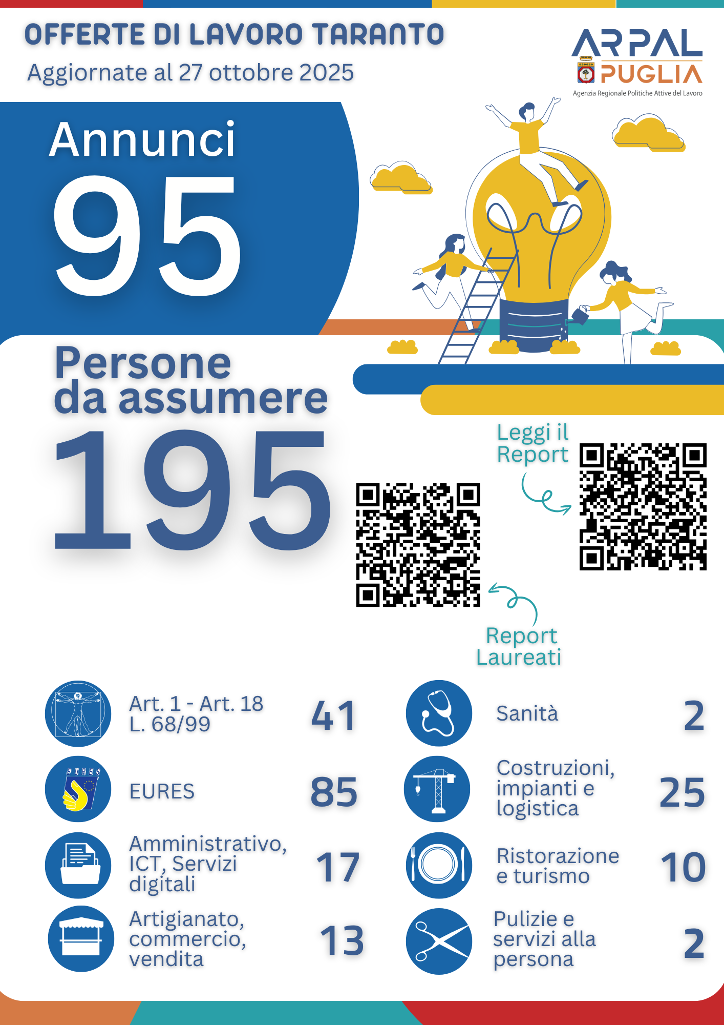 95 annunci attivi e 195 le figure ricercate