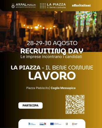 A Ceglie Messapica torna “La Piazza – Il Bene Comune”: ARPAL Puglia protagonista con colloqui di lavoro e recruiting